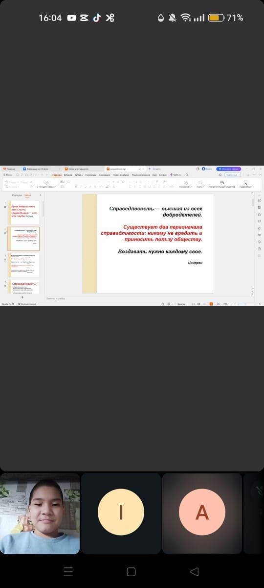 15.01.2026 ж. «Заң және тәртіп» айлығы аясында онлайн форматта «Адал Ұрпақ» клубының жетекшісі Ерден І. Қ. «Адалдық пен әділдік» тақырыбында адалдық сағатын өткізді.