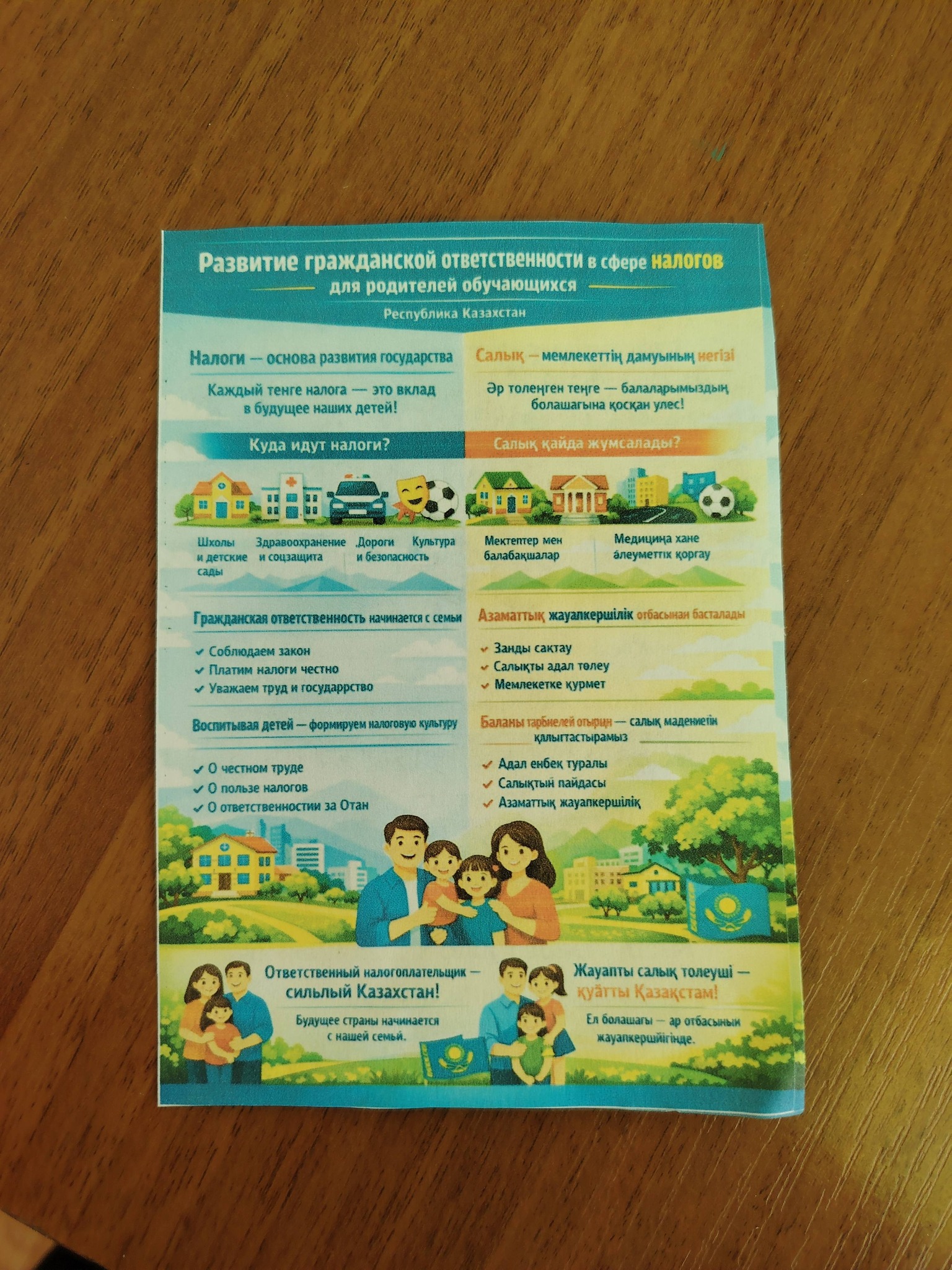 «Адал азамат» біртұтас тәрбие бағдарламасын іске асыру аясында, сондай-ақ «Заң және тәртіп» айлығын өткізу кестесіне сәйкес мектепте салық салу мәселелері бойынша түсіндіру жұмыстары жүргізілді. Оқушылардың ата-аналарына салықтар, олардың түрлері және қоғ