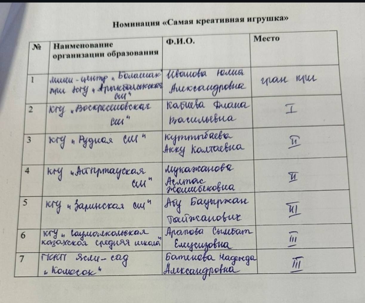 Мақтанышпен хабарлаймыз, мектебіміздің өкілі, шағын-орталықтың тәрбиешісі Кабиева Диана Васильевна аудандық білім бөлімінің ұйымдастыруымен өткен «Үздік жаңа жылдық ойыншық» байқауында «Ең креативті ойыншық» номинациясы бойынша I орынға ие болды. Бұл — та